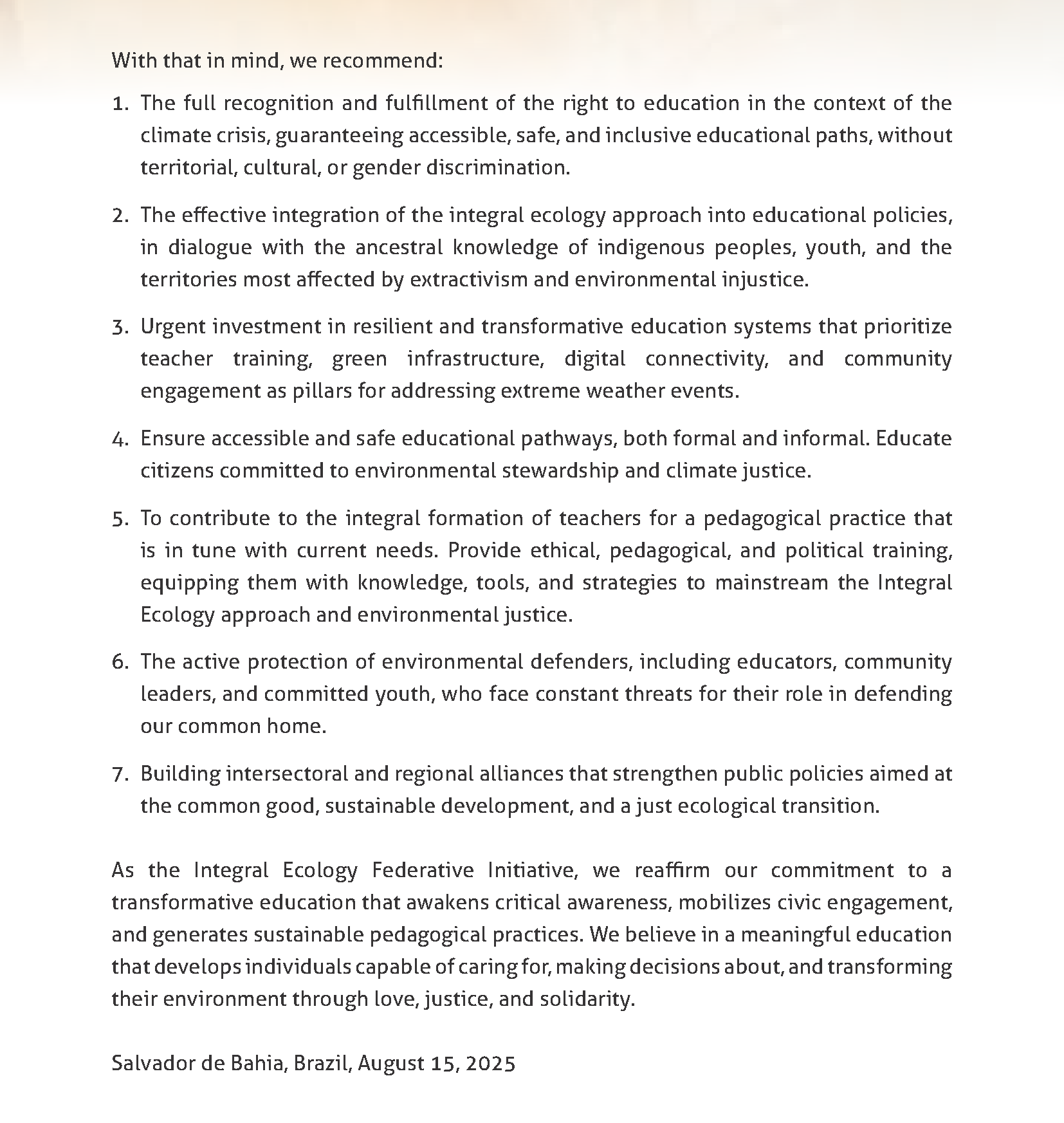Fe y Alegría’s message to world leaders in Belém is clear: The Climate Crisis Is a Crisis for Education. In their Call to Put Education at the Center of the Global Climate Agenda, Fe y Alegría International has laid out seven clear recommendations for global leaders ahead of COP30: