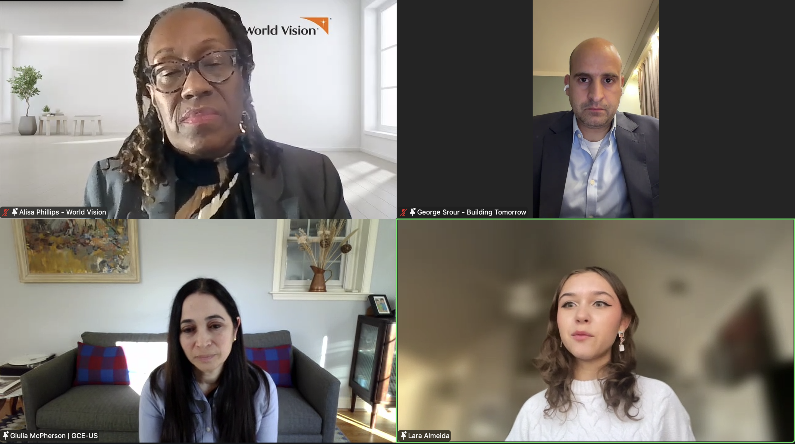 Alisa Phillips, Senior Education Advisor with World Vision, shared that despite recent U.S. cuts to international basic education, governments worldwide are enhancing their recognition of education as a moral imperative. George Srour, joining from Kigali on behalf of Building Tomorrow, added on to this by discussing how government responsiveness to literacy and education plays out through community-engaged programs.